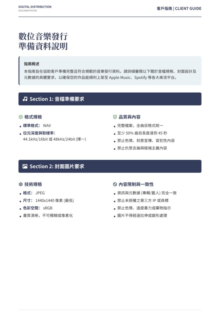 ✦ 數位音樂發行準備資料